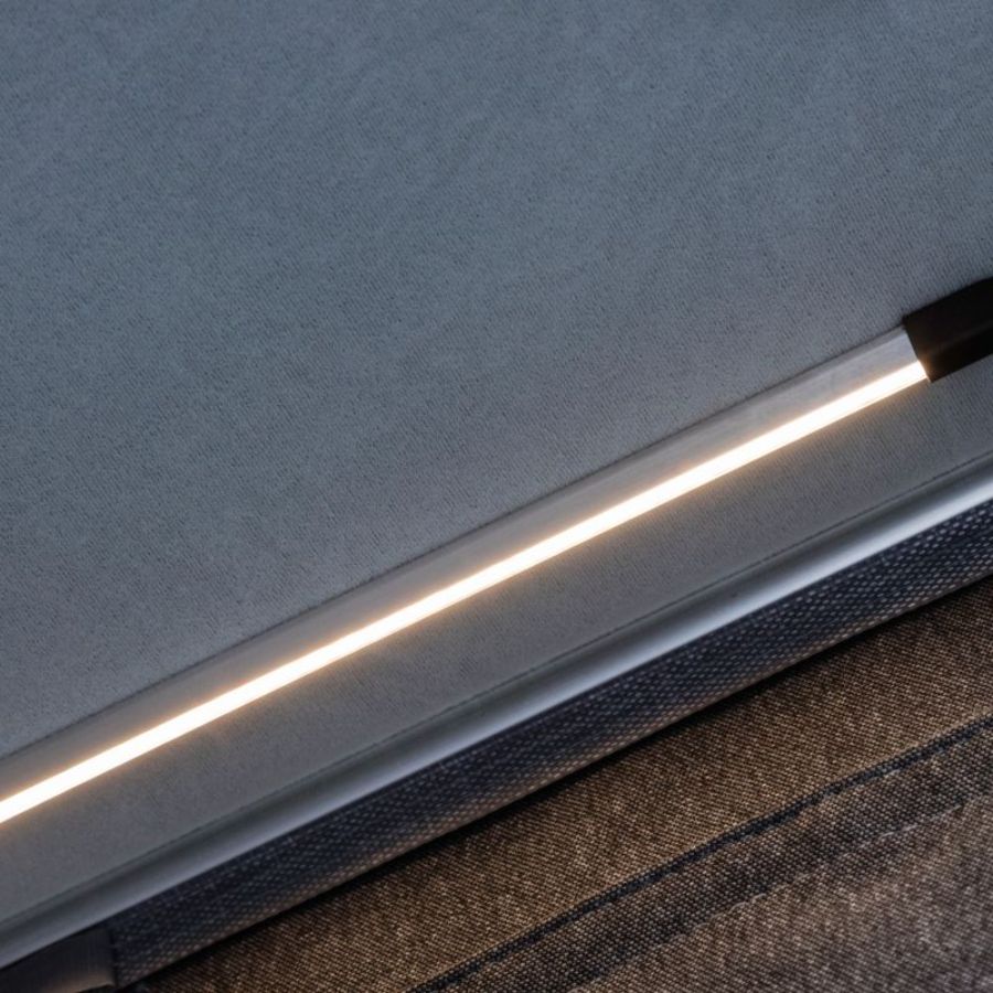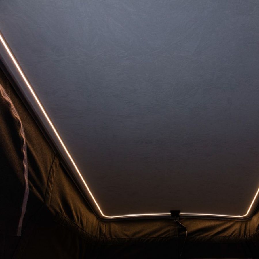 Das integrierte LED-Lichtband taucht dein Dach in warmes, gleichmäßiges Licht – perfekt zum Lesen, Kochen oder einfach Chillen. Dank Dimmfunktion passt du die Helligkeit genau deiner Stimmung an.